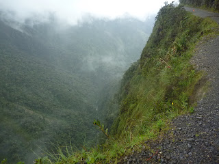 This is an extract from someone else -" Bolivia's Yungas Road is officially the most hazardous on earth. Local people pray before using it and the nearest hospital is a two-hour drive away" and " The North Yungas Road (alternatively known as Road of Death or Death Road) is a 61-kilometre (38 mi) or 69-kilometre (43 mi) road[1] leading from La Paz to Coroico, 56 kilometres (35 mi) northeast of La Paz in the Yungas region of Bolivia. It is legendary for its extreme danger and in 1995 the Inter-American Development Bank christened it as the "world's most dangerous road"" - BUT the attraction is there to do it and I thought that I would let my Action Outdoor Group in Perth down if I didn't at least try it and to be honest I was a little nervous but really excited at the prospect as well - a death wish????? I don't think so - just exciting.....